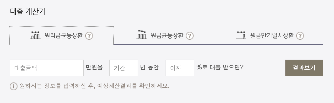 아래의 대출계산기를 이용하면 얼마를 어느 기간 동안 대출했을 때 얼마를 상환해야 하는지 확인할 수 있습니다.